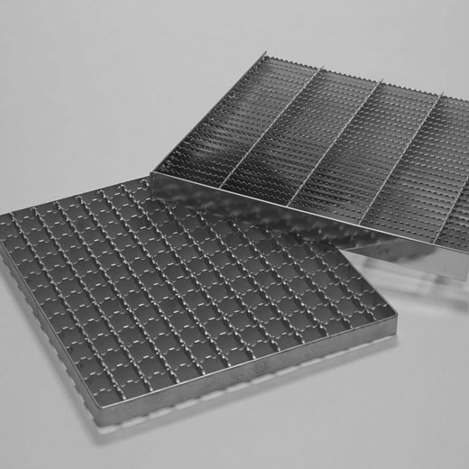 .Selon les types d'assemblages en mailles droites ou inclinées, le caillebotis pressé offre une multitude de destinations possibles, en industrie comme en architecture.