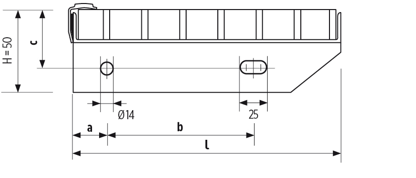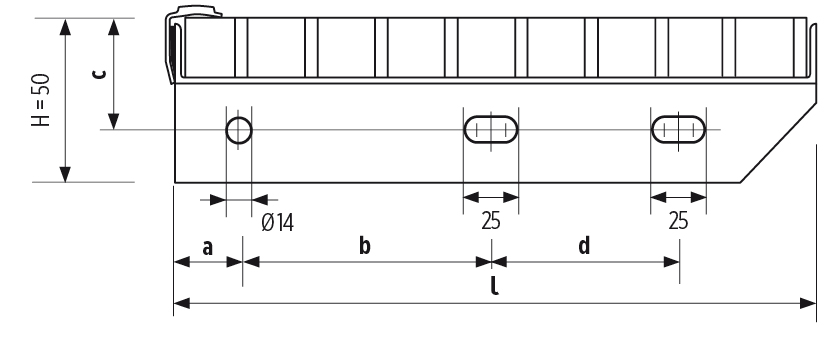 Perçage 2 trous Goussets standards de 175 à 334 (en mm) |